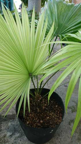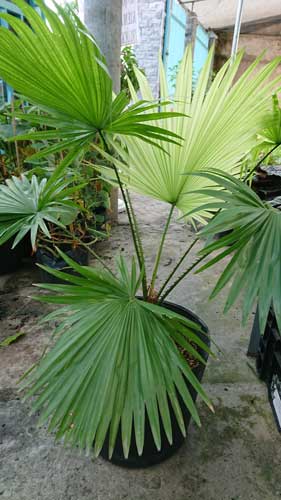 Cây kè bạc có thân trụ rễ chùm lá xòe thùy hình quạt tàu lá và lá màu trắng bạc, thời gian sinh trưởng của mỗi tàu lá kéo dài đây là loại cây quí nhập nội hiện nay được trồng phổ biến ở nước ta trong các công viên, biệt thự |